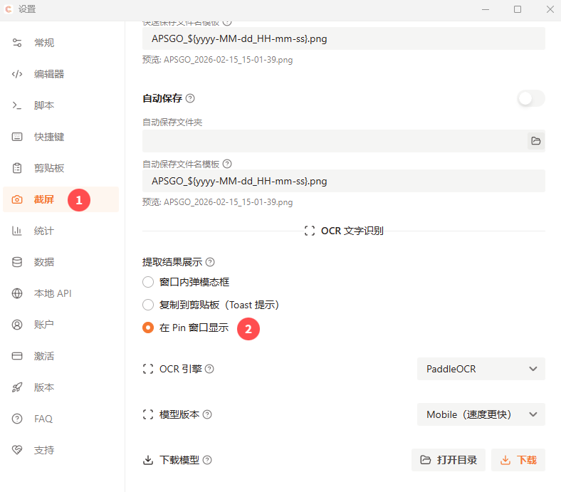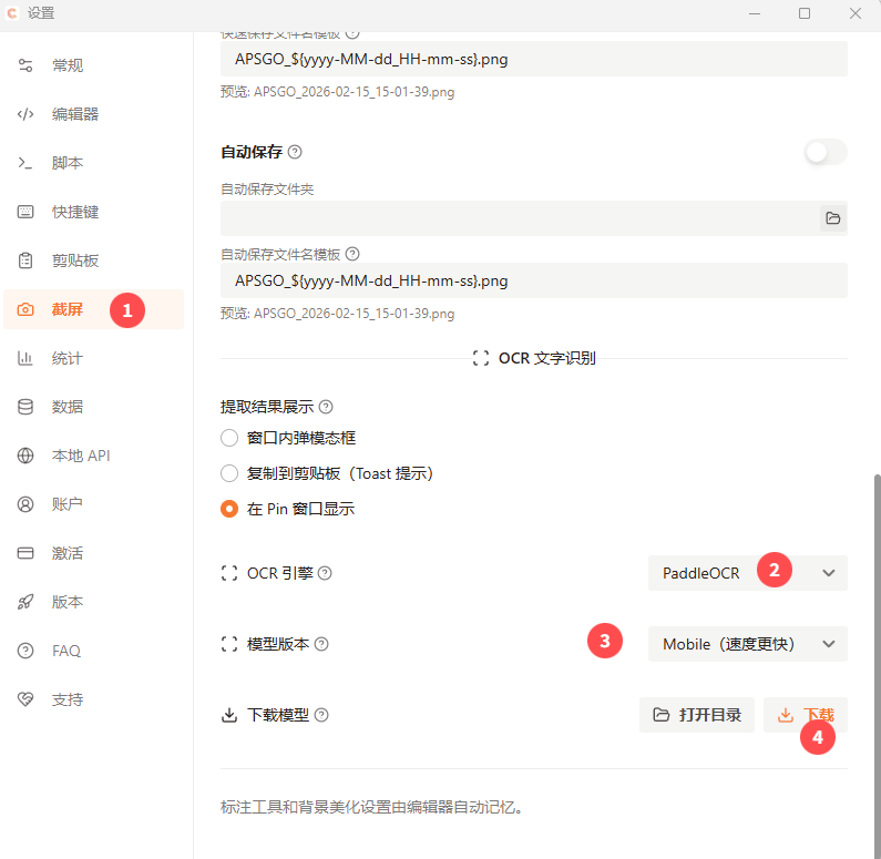 By the way, if you don't want the results to be displayed in a fixed manner after recognition, you can choose "Display in Pin window''